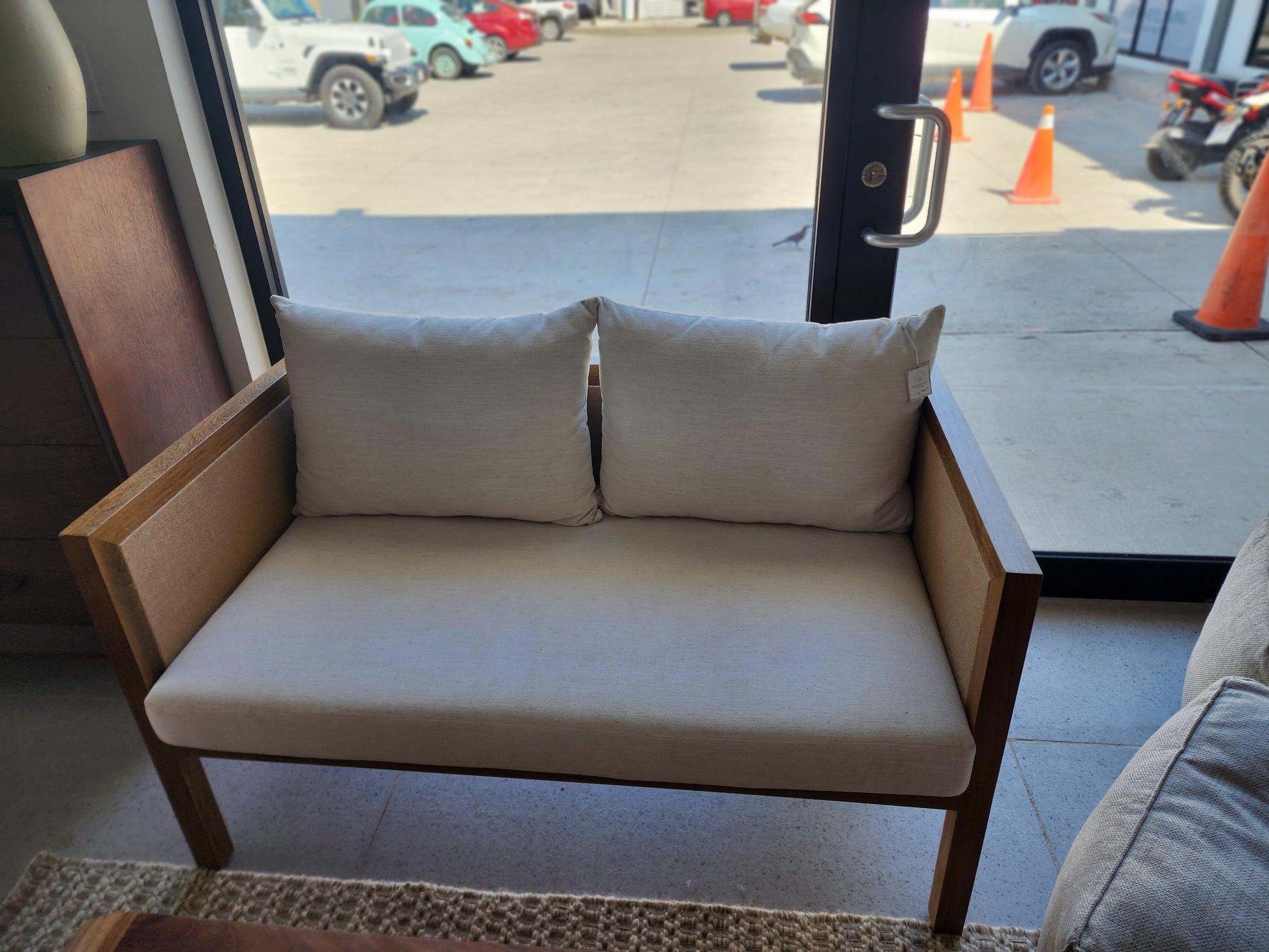 Looking for a way to create a cozy and welcoming atmosphere in your Huatulco home? Our Ainara Love Seat is the perfect solution! With its luxurious Fresh Flax finishing fabric and beautiful Rosa Morada Natural wood finish, this Love Seat exudes style and sophistication.