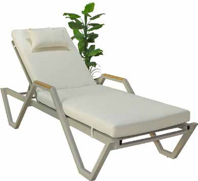 The clean lines of our Fargo Sun Lounger create a simple, yet classic look that elevates any outdoor space. Crafted of lightweight powdercoated aluminum with teak insets on each arm that create a unique design element. Included cushions are upholstered in 100% solution-dyed acrylic fabric.