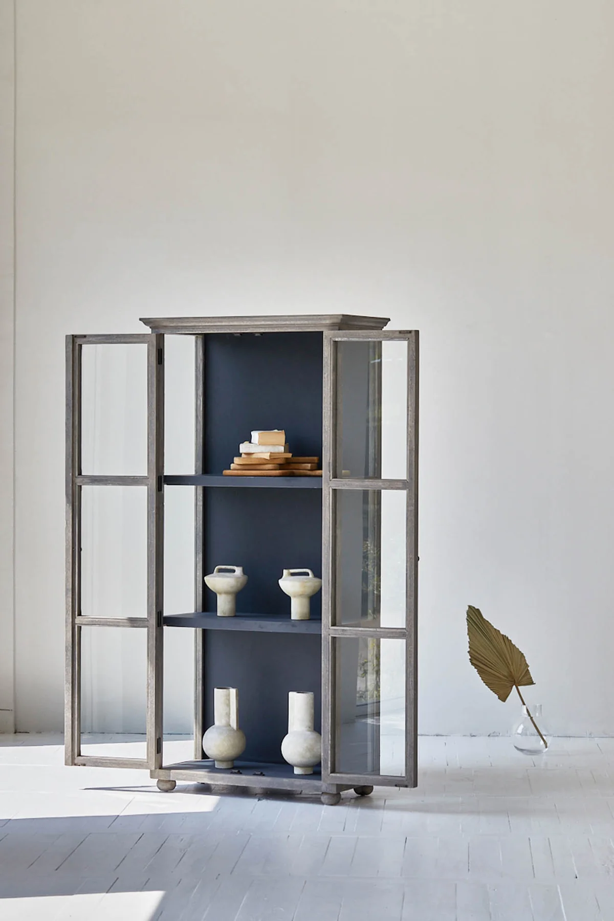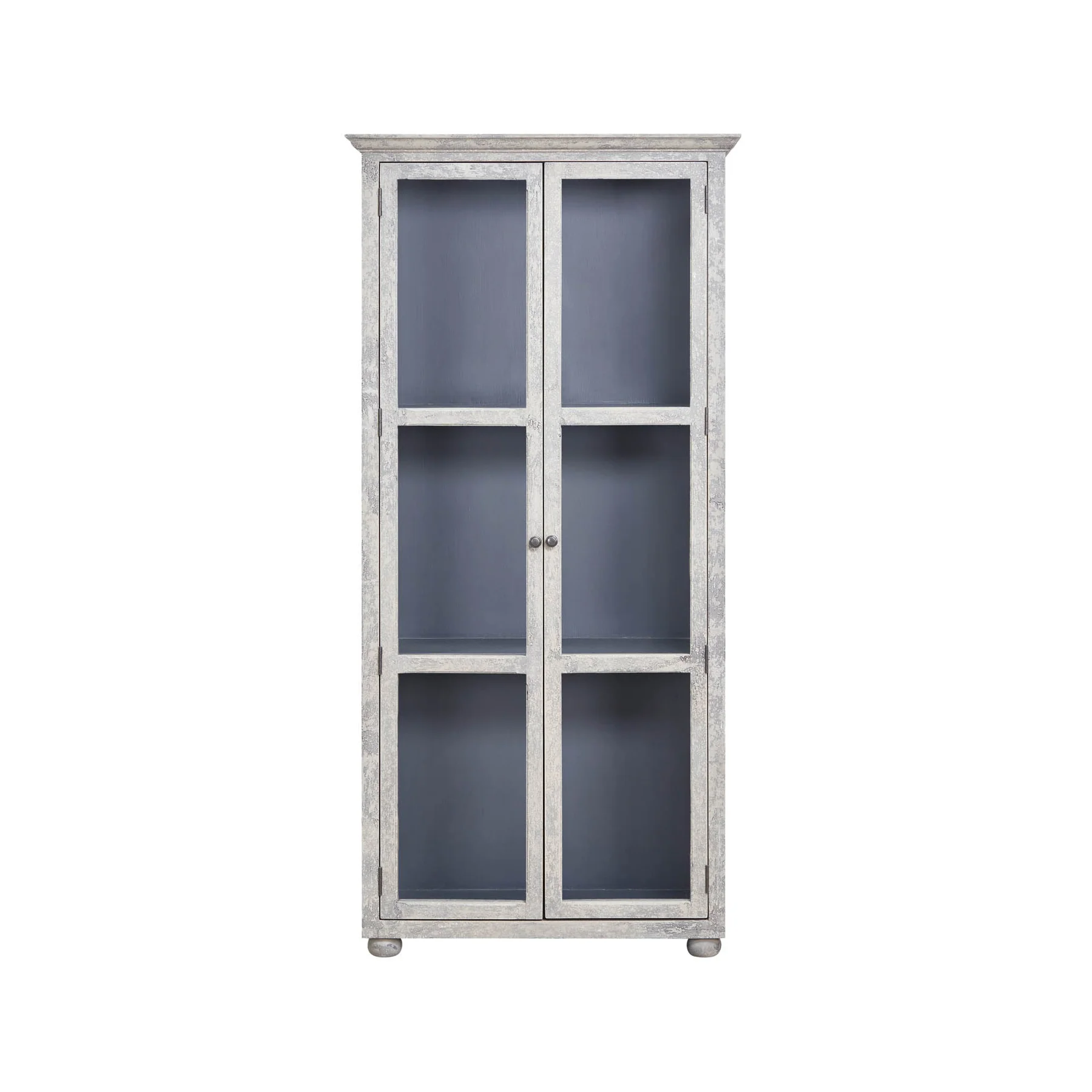 - Frame has a beautiful grey washed finish with the inside cabinet in a dark blue colour.
