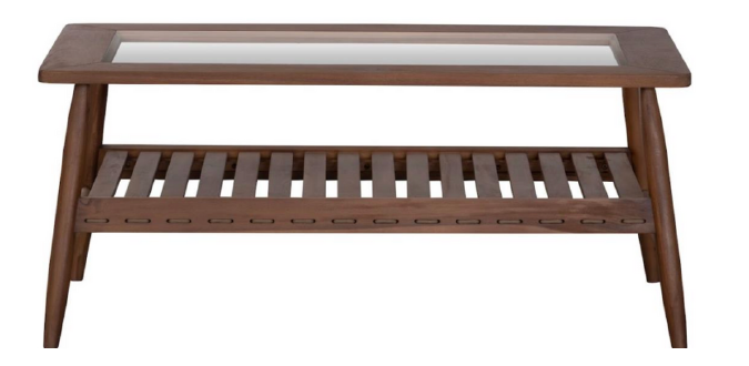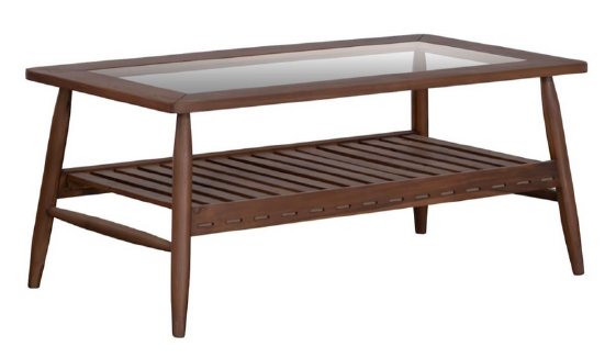 Material: Solid Acacia wood structure, base with stylized legs and glass top